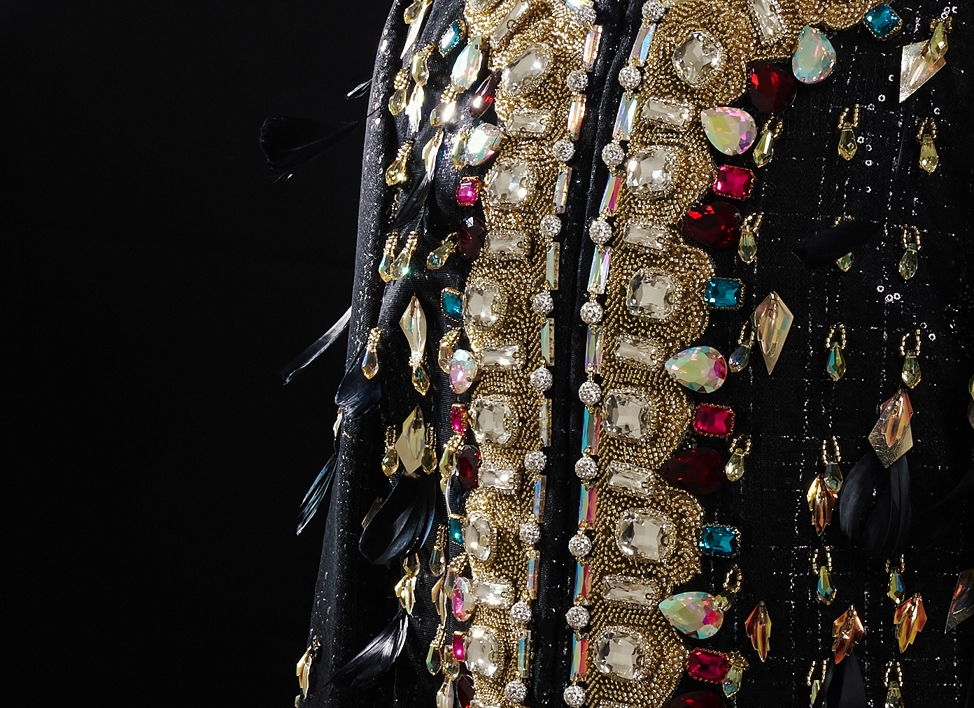 With movement, the embellishments respond subtly to the body, revealing depth and weight.